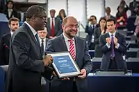 - Schulz awards the 2014 Sakharov Prize to Dr Denis Mukwege. Европейский парламент (26 ноября 2014). Дата обращения: 30 ноября 2014.