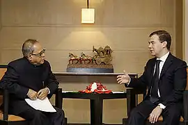 Президент России Дмитрий Медведев и министр финансов Индии Пранаб Мукерджи. 2008 год.