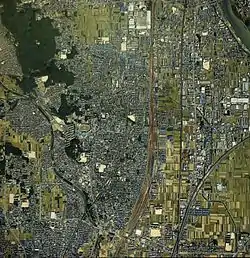 ![]() Сверху:Аэрофотосъёмка города Муко, 1987 годСнизу:Мэрия города Муко | |||||