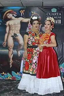 Лукас Авенданьо — начинающий художник, чья недавняя работа представляет собой странную перформативную интервенцию мексиканских националистических представлений, особенно женщин-сапотеков из Техуаны. Авенданьо, родившийся на перешейке, олицетворяет сложную идентичность муксов. Его переодевание пересекает ритуальные танцы с автобиографическими пассажами и действиями, в которых участвуют зрители, чтобы бросить вызов широко распространенному взгляду на гей-дружественную туземную культуру и указать на существование жизни, которая преодолевает боль и одиночество с самоутверждающей гордостью[13].