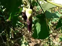 Бобовые - бархатные бобы, бенгальские бархатные бобы, альпинист, цветки тёмно-фиолетовые.