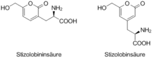 Эти два соединения были исключением Juckbohnenkeimlingen в Pantherpilz (Мухомор пантерный) и других грибов рода Мухомор[28][29] и Clitocybe (Говорушка)[30]. Стизолобиновая кислота является конкурентным антагонистом AMPA-рецептора[31][32][33].