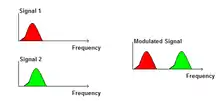 Мультиплексирование с разделением по частоте (англ. FDM, Frequency Division Multiplexing) предполагает размещение в пределах полосы пропускания исходного канала связи нескольких каналов связи с меньшей шириной. Наглядным примером может послужить радиовещание, где в пределах одного канала (радиоэфира) размещено множество радиоканалов на разных частотах (в разных частотных полосах).