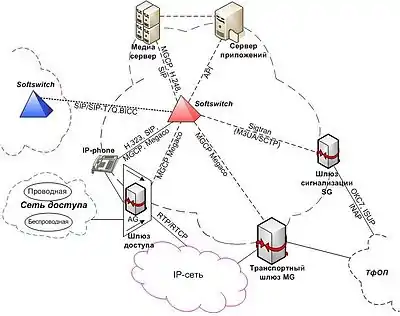 На сегодняшний день, основным устройством для голосовых услуг в сетях NGN является Softswitch — программный коммутатор, управляющий сеансами VoIP. Также немаловажной функцией программного коммутатора является связь сетей следующего поколения NGN с существующими традиционными сетями ТфОП, посредством сигнального шлюза и медиашлюза, которые могут быть выполнены в одном устройстве. В терминах сети на базе протоколов H.323 программный коммутатор выполняет функции контроллера зоны H.323, в терминах сети на базе MGCP он выполняет функции контроллера шлюзов.