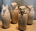 Внутренности знатных особ помещались в отдельный сосуд и бросались в реку или — в особом сосуде «канопа» — возлагались при трупе[3]. Крышки четырёх каноп представляли собой головы гениев смерти (человек, шакал, ястреб и обезьяна)[2].