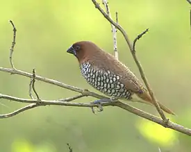 - Чешуйчатогрудая амадина Lonchura punctulata (Linnaeus, 1758)