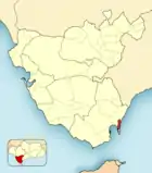 На административной карте провинции Кадис указано расположение центров её муниципалитетов.