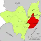 | Алькора исп. Alcora, кат. L'Alcora | ![]() | ![]() | 94,9 | 10 417 | 40°04′26″ с. ш. 0°12′47″ з. д. | Алькалатен | ![]() | [10] |