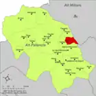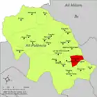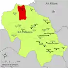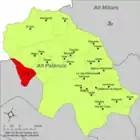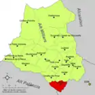 | Альхимия-де-Альмонасид исп. Algimia de Almonacid, кат. Algímia d'Almonesir | ![]() | ![]() | 20,33 | 262 | 39°54′51″ с. ш. 0°26′32″ з. д. | Альто-Палансия | ![]() | [13] |