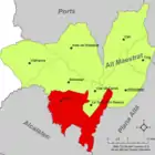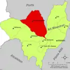 | Арес-дель-Маэстре исп. Ares del Maestre, кат. Ares del Maestrat | ![]() | ![]() | 118,67 | 184 | 40°27′23″ с. ш. 0°07′55″ з. д. | Альто-Маэстрасго | ![]() | [20] |
