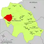 | Бенасаль исп. Benasal, кат. Benassal | ![]() | ![]() | 79,58 | 1063 | 40°22′47″ с. ш. 0°08′32″ з. д. | Альто-Маэстрасго | ![]() | [29] |