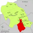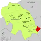 | Альмедихар исп. Almedíjar, кат. Almedíxer | ![]() | ![]() | 20,9 | 244 | 39°52′22″ с. ш. 0°24′31″ з. д. | Альто-Палансия | ![]() | [15] |