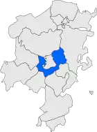 | Название | Изображение | Герб | Площадь (км²)[4] | Население (2020)[3] | Координаты | Комарка | Карта | Прим. |