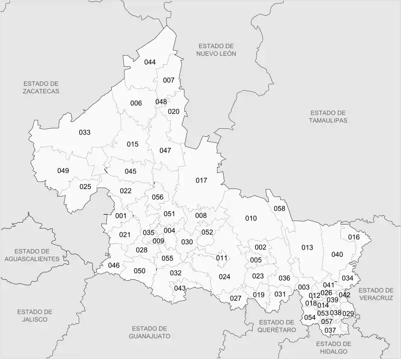 Мексиканский штат Сан-Луис-Потоси разделён на 58 муниципалитетов[1].