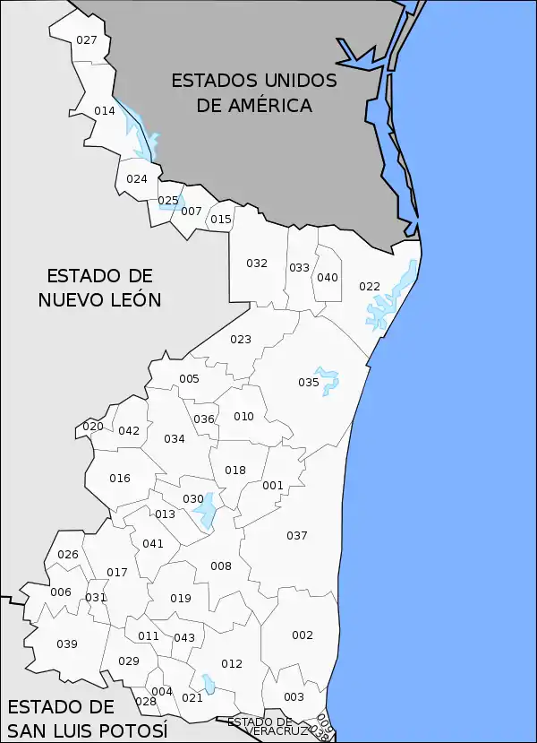 Штат Мексики Тамаулипас является одним из 32 субъектов Мексиканских Соединённых штатов. Он разделён на 43 муниципалитета.