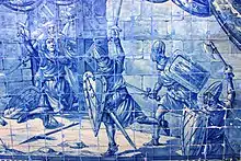 - «Король Афонсу Энрикеш поместил здесь эту статую в память о славной смерти, которую Мартин Муниш, прародитель семьи Вашкунселуш, принял у этих ворот, удерживая их открытыми в 1147 году.»