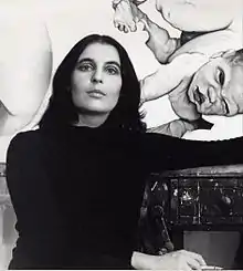 ![]() Майна-Мириам Мунски перед неоконченной картиной «Близнецы II» Фото: Петер Руппенталь, 1971. | |