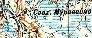 Согласно топографической карте 1926 года, на месте современной деревни располагался совхоз Муравейно.