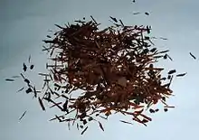 Кора коричневато серая, твёрдая и тяжело отделяющаяся. Древесина имеет приятный желтоватый цвет, без сучков, чрезвычайно прочная и тяжёлая (935 кг/м³). Содержит много таннинов и поэтому очень устойчива к воздействию окружающей среды, воды и солнца[1]. Для изготовления мебели эту древесину используют редко из-за её твёрдости. Порой её используют для изготовления балок или для других опорных элементов конструкций строений.