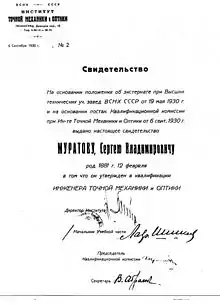 - Муратов Сергей Владимирович (1881—1949) // Виртуальный музей ЛИТМО (СПб госуниверситет инф. технологий, механики и оптики) (Дата обращения: 7 марта 2010)