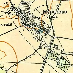 МУРАТОВО — полумызок владельческий при колодцах и пруде, по правую сторону Самрянской дороги в 46 верстах от Петергофа, число дворов — 25, число жителей: 48 м. п., 60 ж. п.; (1862 год)[14]