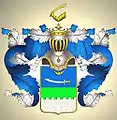 Описание герба: Выдержка из Общего гербовника В верхней голубой половине щита изображён золотой крест и под ним серебряная луна, рогами вниз обращённая. В нижней половине в красном поле означена в латах согбенная рука, с подъятым мечом. Щит увенчан дворянским шлемом с дворянской короной со страусовыми перьями. Намёт на щите голубой и красный, подложен золотом. |