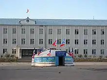 - Ещё примечательные здания находятся на Центральной площади: городской театр и почта находятся на южной и юго-западной сторонах большой центральной площади. Напротив находится администрация аймака, построенная в социалистическом стиле. В середине площади находится конная статуя — памятник Чингунжаву, лидеру местного движения против династии Цин, установленный в 2010 году. Этой конной статуей заменили старый памятник Даваадоржи (см. ниже).