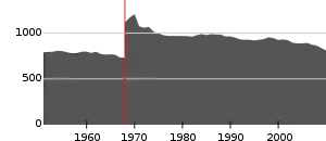 Население коммуны за последние 60 лет.