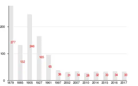 | 1879 | 1885 | 1905 | 1927 | 1961 | 1997 | 2007[16] |