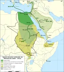 В 1820 году Мухаммед Али предпринял попытку захватить Нубию и Сенара, на территории которых укрылись мамелюки[29]. В 1820—1822 годы Египет захватил Северный Судан и сделал его своей провинцией с центром в Хартуме (основанного в ходе завоевания)[13].