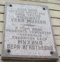 Ве́ра Игна́тьевна Му́хина (19 июня [1 июля] 1889, Рига, Лифляндская губерния, Российская империя — 6 октября 1953, Москва, СССР) — советский, российский скульптор -монументалист, педагог. Академик АХ СССР (1947). Народный художник СССР (1943). Лауреат пяти Сталинских премий (1941, 1943, 1946, 1951, 1952).