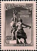 Почтовая марка СССР: Скульптура Мухиной «Рабочий и колхозница»