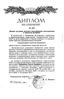 Впервые описал два физиологических явления, зарегистрированные как научные открытия: «Закономерности распределения эритроцитов в кровеносной системе человека и животных» (1954), а также «Регулирование мозгового кровообращения магистральными и пиальными артериями» (1959).