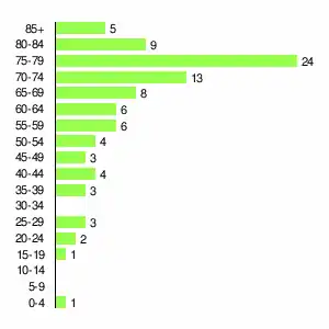 | Жителей | 511 | 538 | 516 | 381 | 294 | 228 | 162 | 127 | 92 |