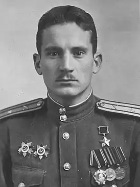 16 января 1945 года под сильным артиллерийским, миномётным и пулемётным огнём противника по льду переправил орудия своего подразделения на правый берег реки Висла. Противник силами до двух рот при поддержке самоходных орудий и танков предпринял четыре контратаки на позиции десантников, но все они благодаря хорошо организованному и прицельному огню дивизиона были отбиты. При этом артиллеристами было уничтожено четыре пулемётных точки и до 70 солдат и офицеров врага, подавлен огонь трёх пулемётных точек и одной миномётной группы. Успешные действия дивизиона позволили 1281-му стрелковому полку форсировать реку с минимальными потерями.