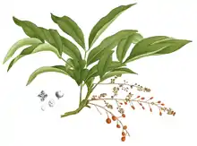Плоды — ягоды, состоящие из 1—3 долей, приблизительно 1,5 см в диаметре, содержат от одного до трёх семян. В мякоти плодов содержится более 30 различных сапонинов.