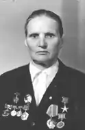 Одна из первых в районе достигла рубеж в пять тысяч килограмм молока с каждой фуражной коровы. Указом Президиума Верховного Совета СССР от 22 марта 1966 года за достигнутые успехи в развитии животноводства, увеличении производства и заготовок мяса, молока, яиц, шерсти и другой продукции удостоена звания Героя Социалистического Труда с вручением ордена Ленина и золотой медали «Серп и Молот».
