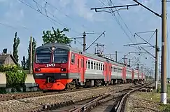 Электропоезд ЭД9МК (экспресс Краснодар-I - Ростов-Главный) следует по 2-му главному пути