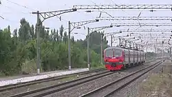 Электропоезд ЭД9М сообщением Староминская-Тимашевская — Краснодар-I прибывает на 4-й путь станции
