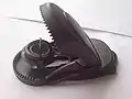Представляет собой изделие, похожее на пасть хищника с мощными зубьями внутри, которые являются активной зоной, отсюда и народное название. С другой стороны находится рычаг взведения и разгрузки, плюсами такой мышеловки является то, что она практически полностью защищена от ложных срабатываний, поскольку мышь или крыса, активирующая пружину, уже находится в пасти, что исключает частичное попадание в неё. Также удобством является и то, что взведение и разгрузка выполняются посредством лёгкого нажатия на рычаг. Первые образцы подобных мышеловок были представлены в середине 2000-х годов в Китае .
