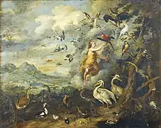 Шведский учёный XVIII века Эммануил Сведенборг в своём толковании Библии — «Небесные тайны» — утверждал, что птицы знаменуют мысли, притом водяные птицы — мысли, стремящиеся к чистой научной истине т. д.[11] Современные искусствоведы аллегорическим полотнам подобных изображений присваивают название «аллегория воздуха» (одной из четырёх стихий) или просто «воздух».