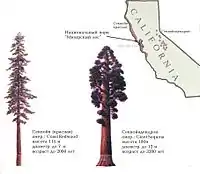 Секвойя и секвойядендрон на карте Калифорнии (растут соответственно на западе и востоке штата)