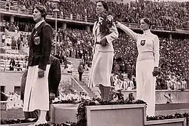 ![]() Эллен Прайс (слева) в 1936 году на Олимпиаде в Берлине | |