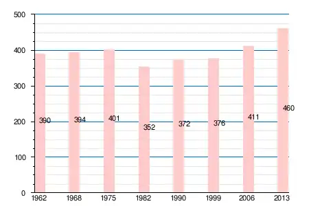 Население коммуны в 2011 году составляло 461 человек[6], в 2012 году — 454 человека[7], а в 2013-м — 460 человек[5].