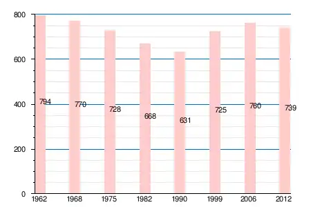 | 794 | 770 | 728 | 668 | 631 | 725 | 760 | 770 | 748 | 739 |