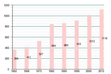 | 1962 | 1968 | 1975 | 1982 | 1990 | 1999 | 2006 | 2008 | 2011 | 2012 |