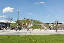 В целях улучшения обслуживания посетителей и туристов, администрация аэропорта решила создать т. н. «Парк посетителей», который включает в себя «Холм посетителей», с которого открывается хороший вид на западный перрон и Терминал 1, а также ресторан и магазин, где продаются модели самолётов и другие вещи для коллекционеров. Парк обслуживается железнодорожной станцией с одноимённым названием, «Besucherpark». Вид с холма показан на фотографии сбоку от текста. В парке также выставлены на обозрения исторические воздушные суда, модели Super Constellation, Douglas DC-3 и Junkers Ju 52.