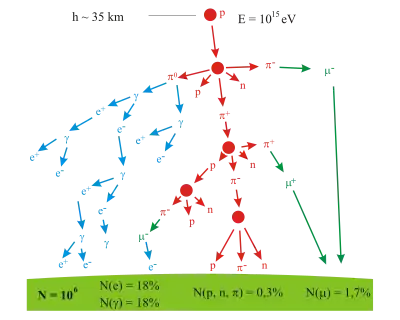 Через свои свойства, мюоны высоких энергий имеют значительно большую проникающую способность по сравнению как с электронами, так и с адронами. Мюоны, порождённые столкновениями частиц с космических лучей с атомами верхних слоев атмосферы, регистрируются даже на глубине нескольких километров[35].