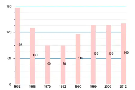 | 1962 | 1968 | 1975 | 1982 | 1990 | 1999 | 2006 | 2011 | 2012 |