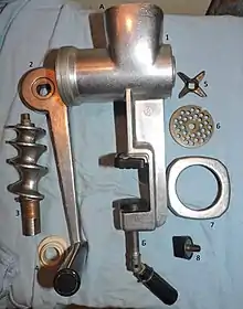 Классическая ручная мясорубка состоит из следующих частей: